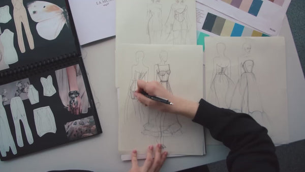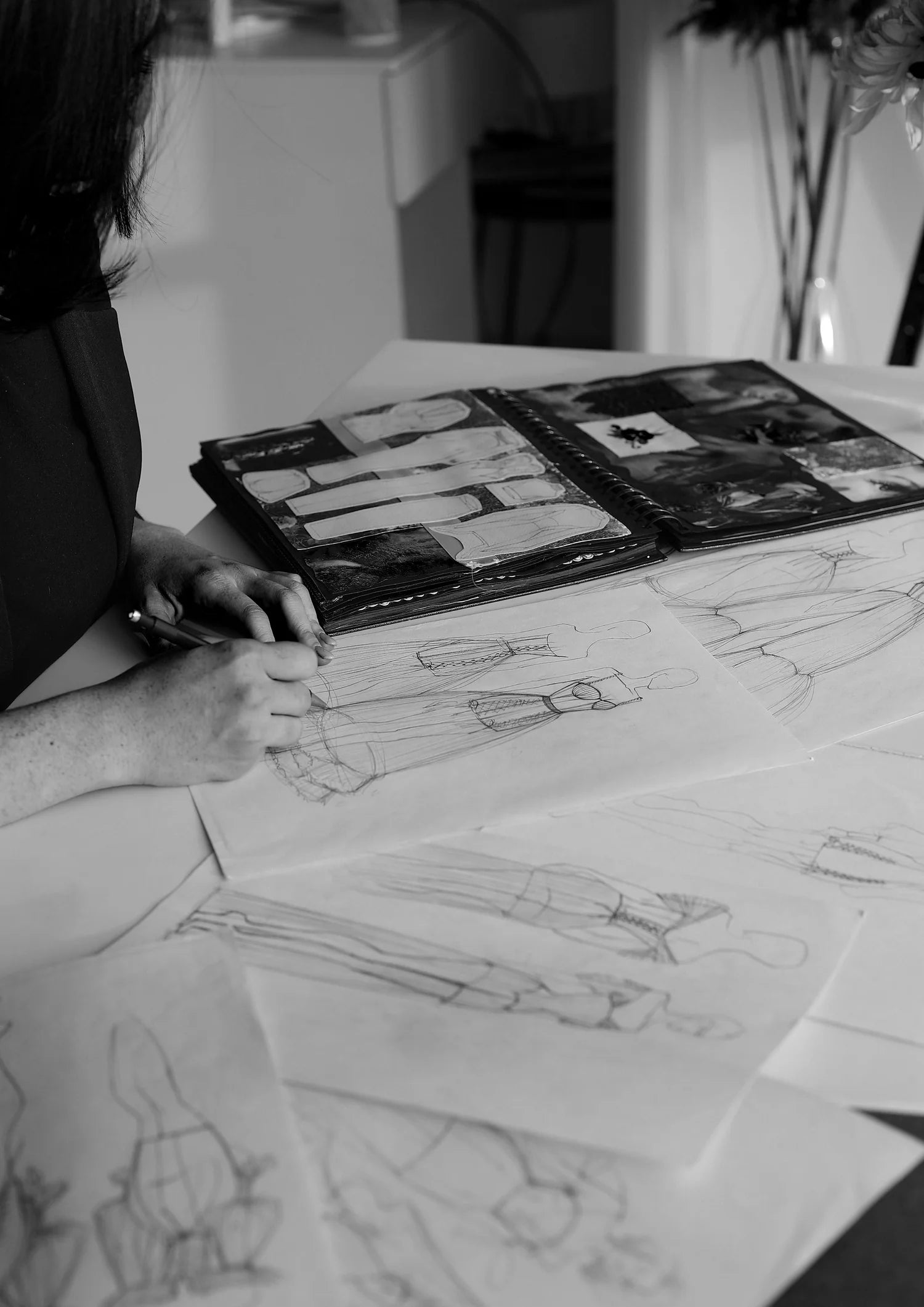 At LA MUSA, every piece begins with Ksyusha’s intuitive spark—whether drawn from a Renaissance masterpiece, a fleeting moment in nature, or the energy of city life. Each collection has its own distinct inspiration and direction—from abstract expressionism to urban modernity—and every stage of development is carried out in-house by the LA MUSA team. Ksyusha first sketches the concept, then refines the silhouette using her founder-patented pattern-making method to ensure flawless fit and accentuate the feminine form. Fabrics are selected for their drape and resilience, and details—detachable sleeves, sculptural seams, or intricate embroidery—are crafted in close collaboration with our artisans. By balancing artistic freedom with couture precision, each garment evolves organically from concept to completion, becoming wearable art that celebrates feminine strength, tells a story, and reveals the transformative power of design.