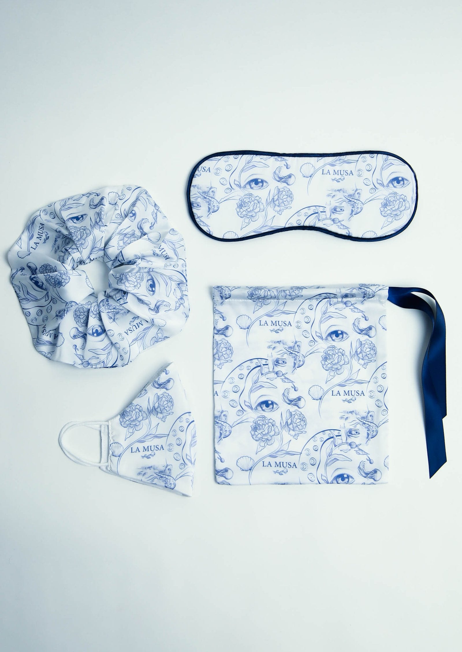 Blue Porcelain Merch Set inspired by china sets, on which different tales and stories were painted. LA MUSA created its own story with a gorgeous print. Every product of the collection combines designs of different times that will only emphasize the beauty and power of modern Muse.