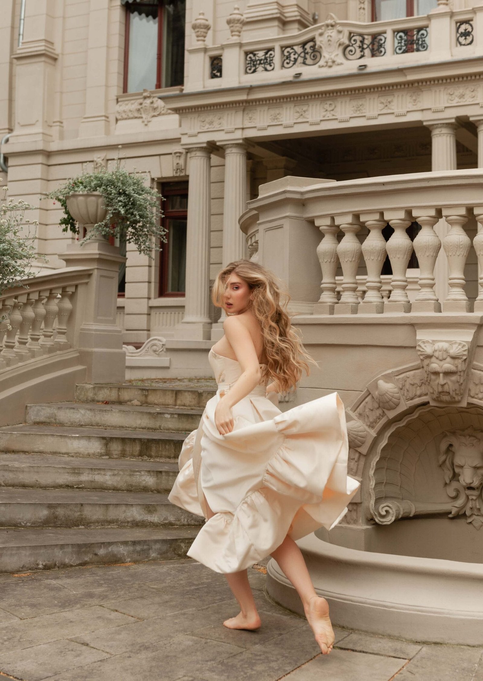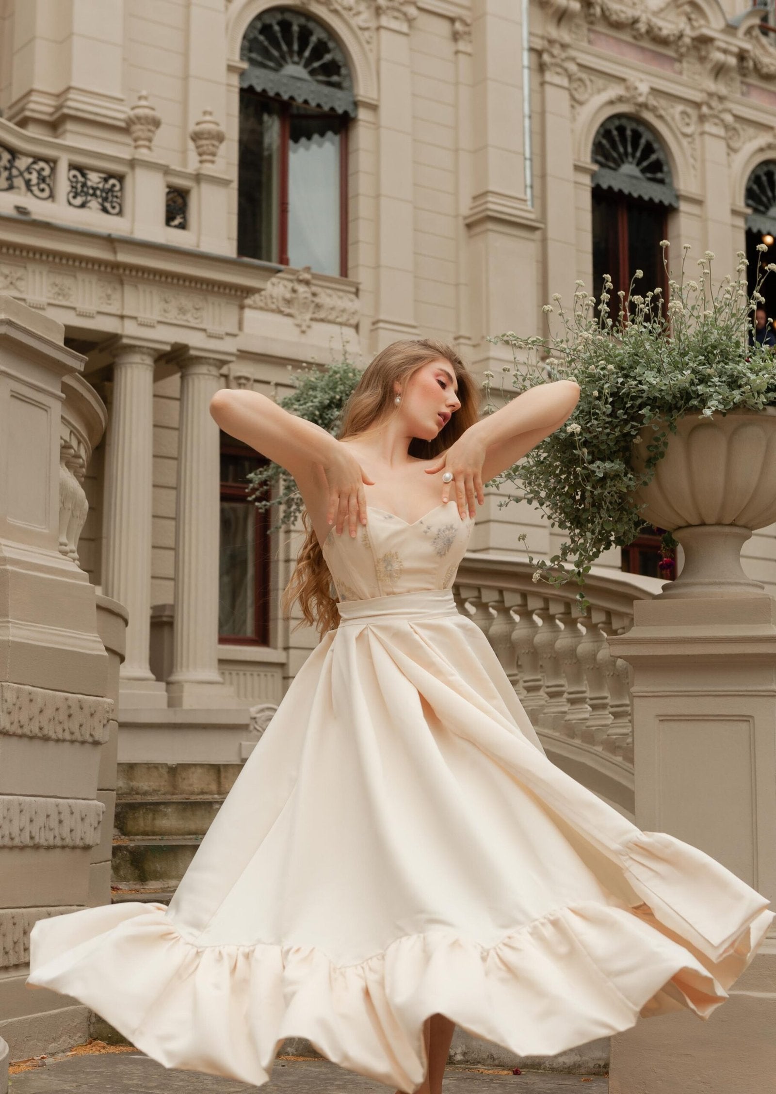 This skirt is part of the Fairyland collection in which we try to remember what is is to believe in magic as in childhood and wish it to come to life. We try to give every woman an opportunity to feel the warmth of the time when the sky was an infinite canvas for your imagination, when in every cloud and flower lived a fairy, when grandma’s pie and butter filled the house with sweet cosiness.
