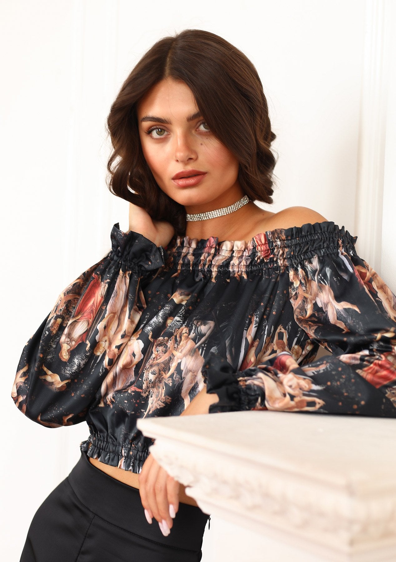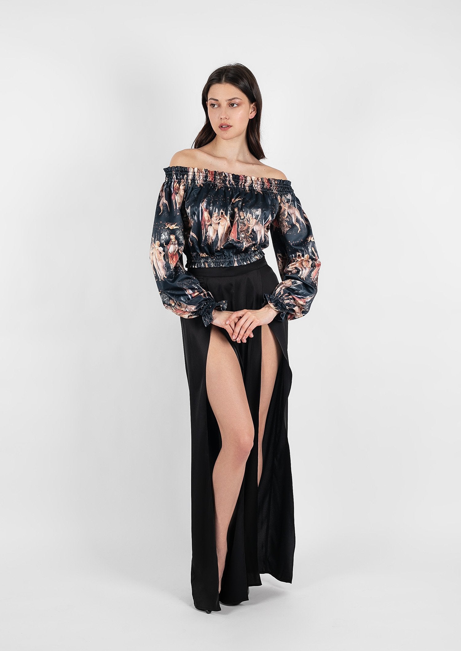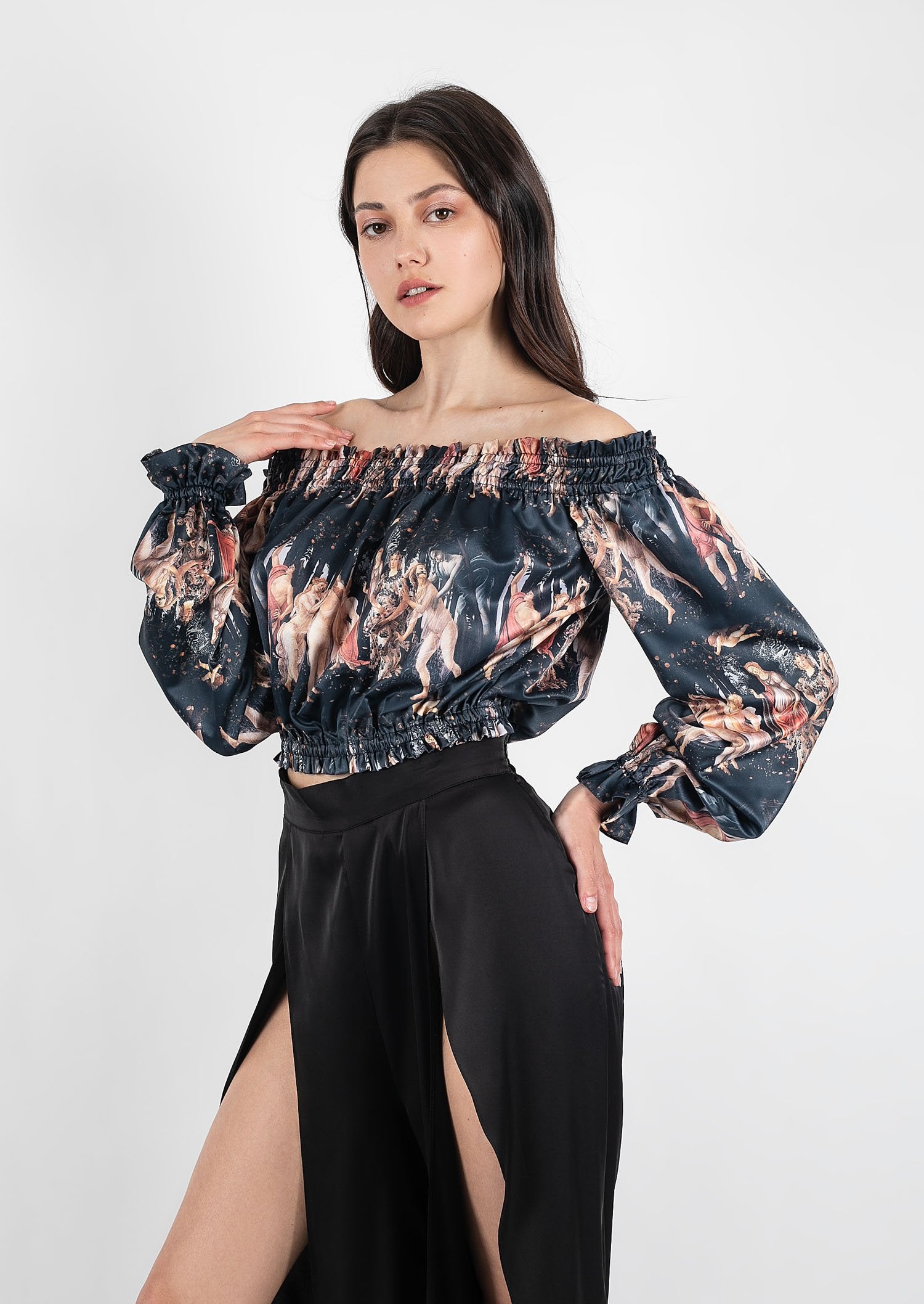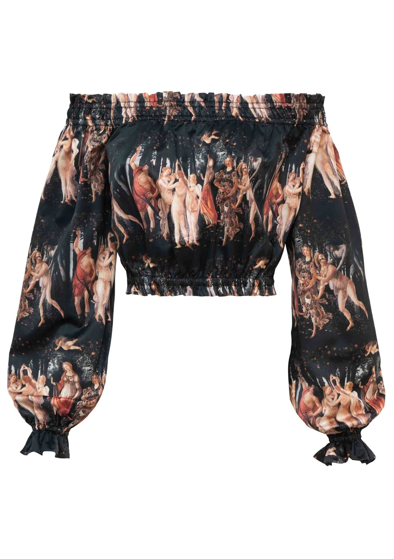 Primavera Top was inspired by the painting of Sandro Botticelli, “Primavera” (late 1470s – early 1480s). We have chosen this painting as a print not only because of its exquisite grandeur, but also because it emphasizes the idea that every woman is unique, just like flowers in the heavenly garden. There are 170 kinds of flowers in this paint. Botanists could only recognize a part of them, as some of these flowers don’t exist in our time.