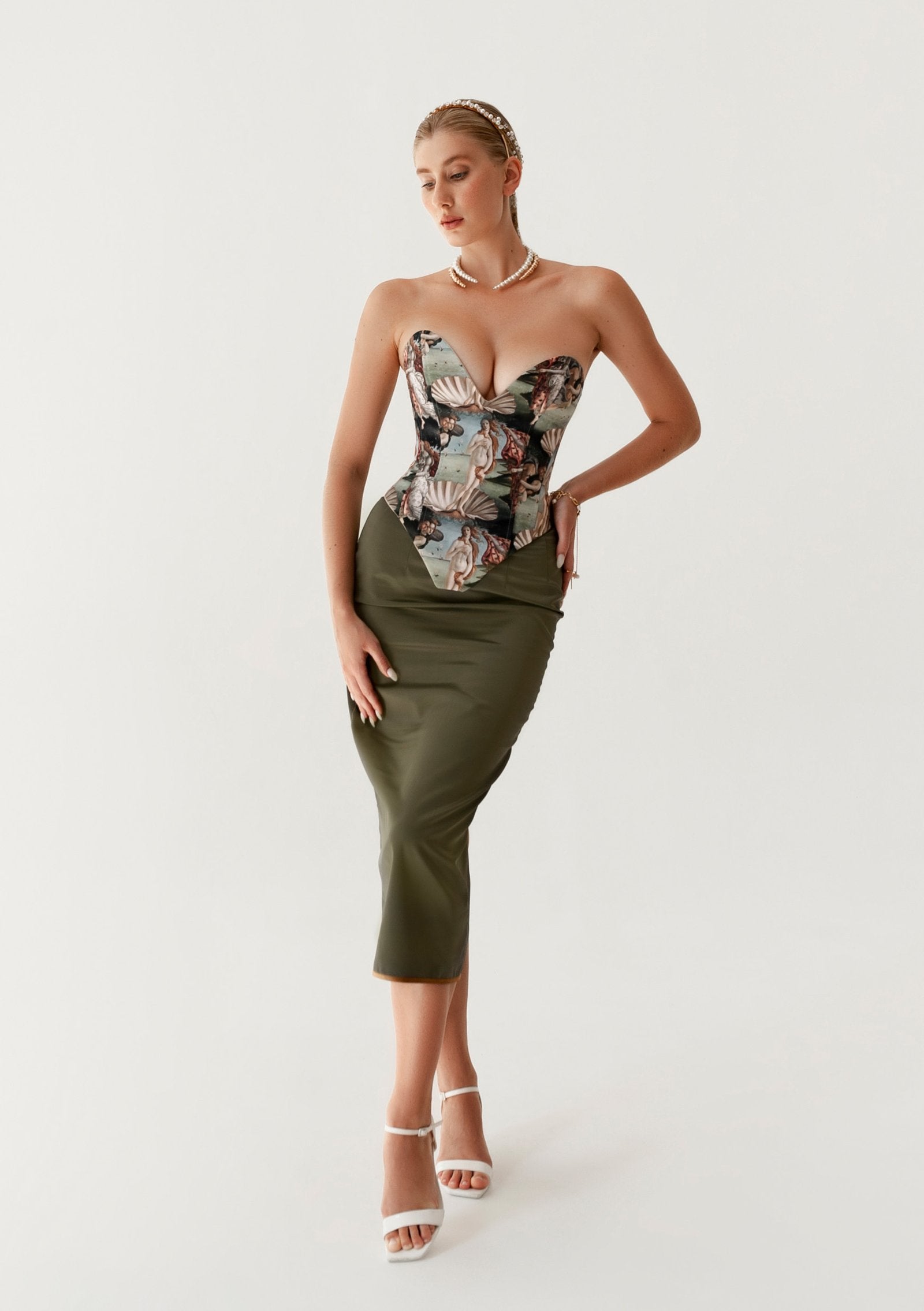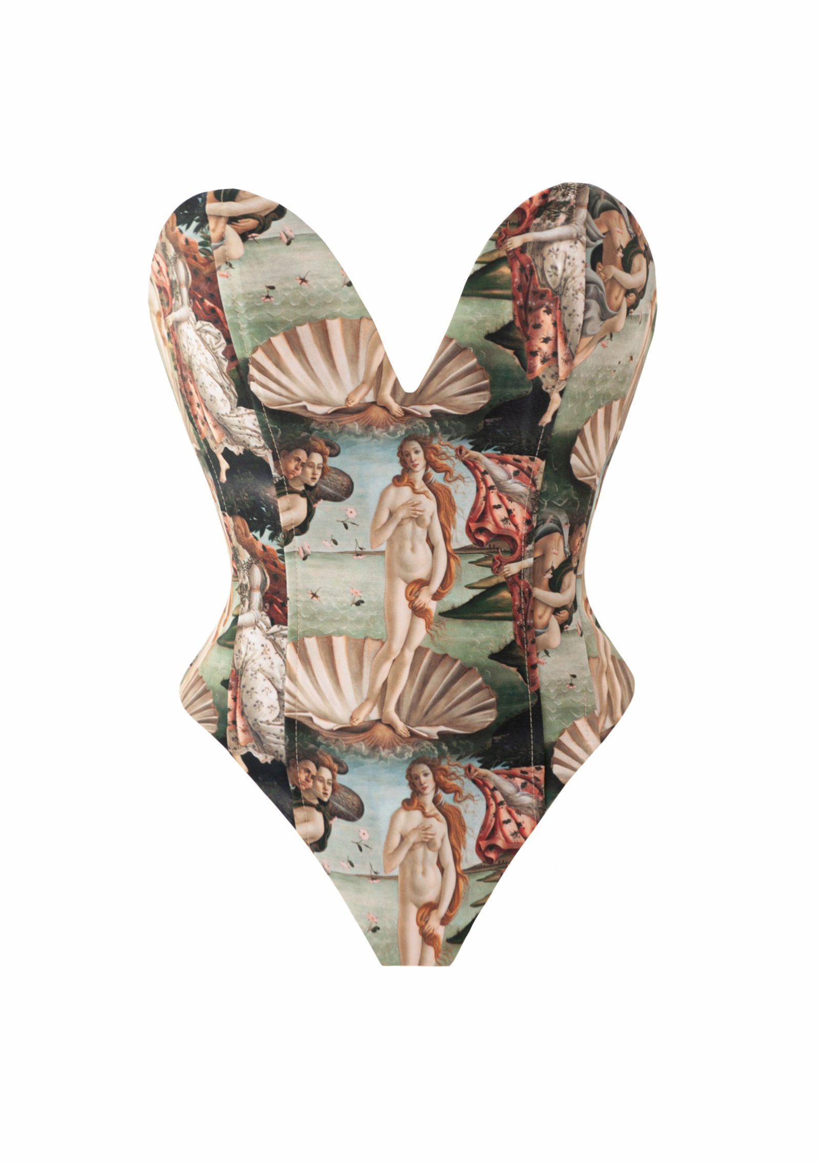 When working on this corset, the designer kept in mind our audience requests and created classical fit corset with covered chest with the most iconic LA MUSA print with the painting of Sandro Botticelli, “The Birth of Venus”. This corset combines an exquisite print and a perfect shape that creates an ideal hourglass look. The soft outlines and delicate colours make a woman feel just like the muse in the painting. Corset with chest fixation with shaping bones along the product creates an hourglass silhouette.